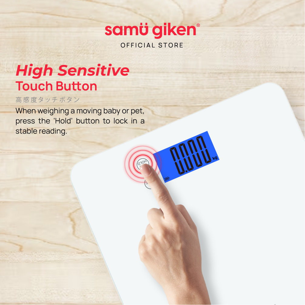 - Durable tempered glass platform for adult weight measurement.