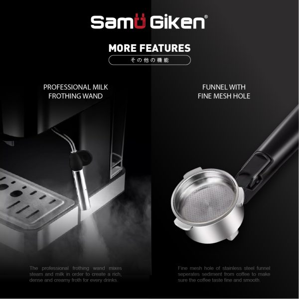 • Samu Giken Coffee Maker Froth & Brew is a programmable coffee maker with adjustable setting panel and come with milk steamer.